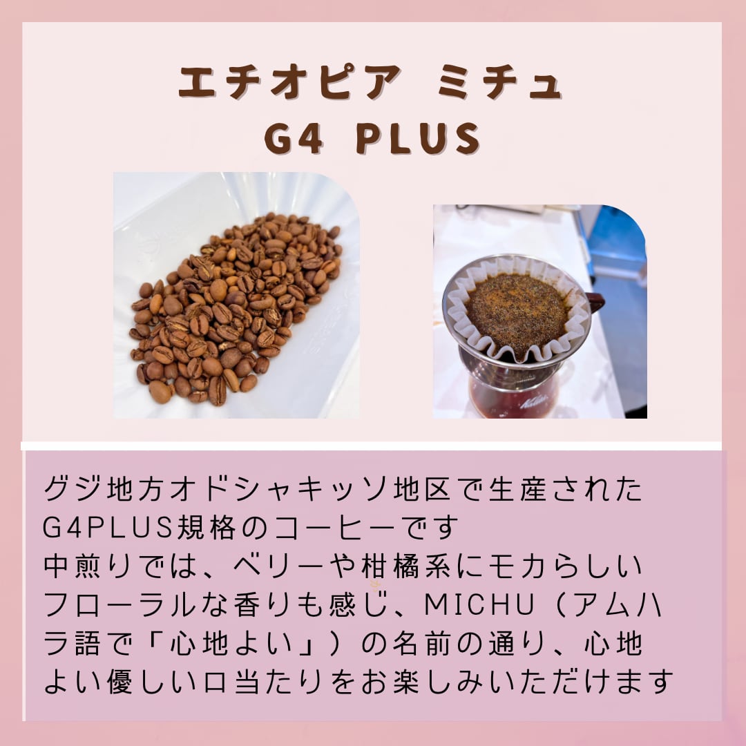 エチオピアらしいベリーや柑橘系の優しい酸味や、ふわっとフローラルな香りとともに、