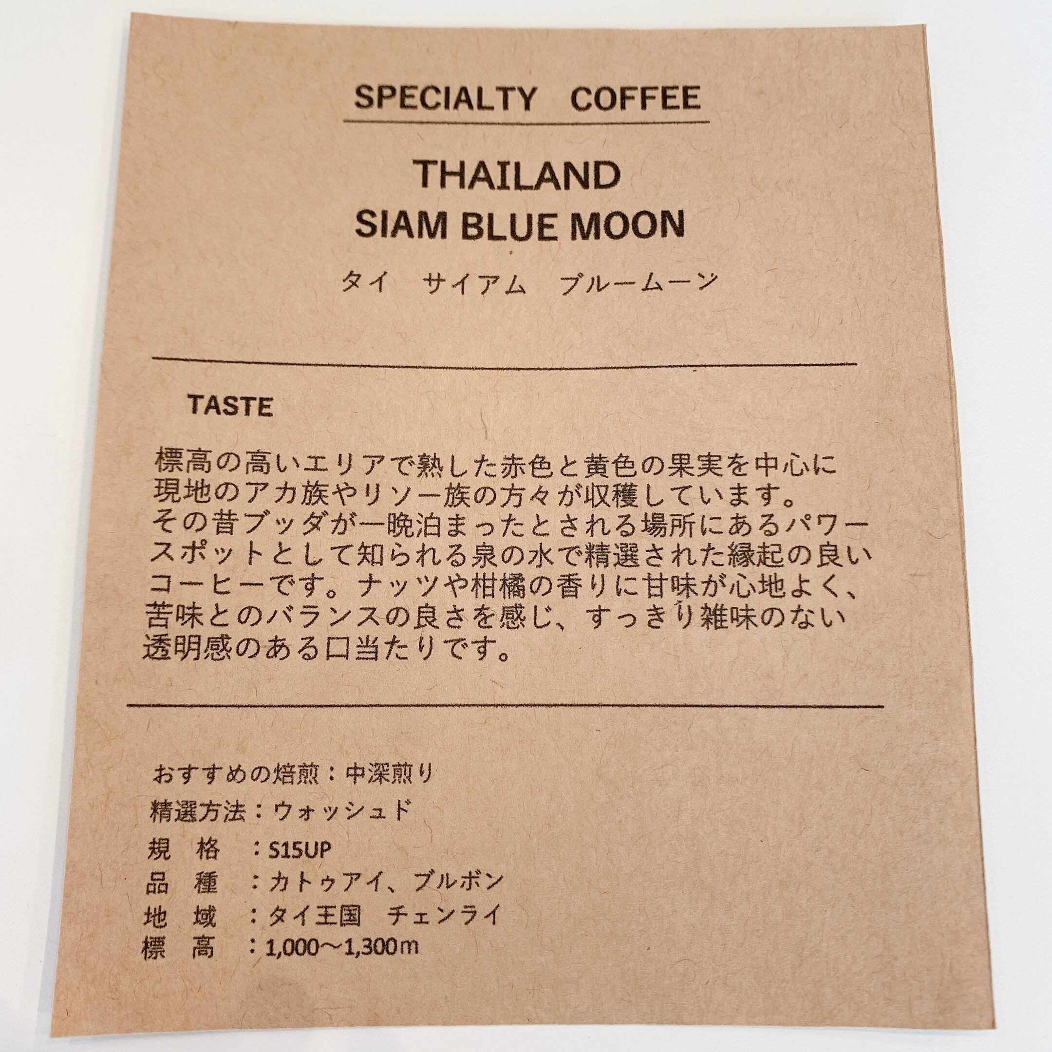 標高の高いエリアで熟した赤色と黄色の果実を中心に現地のアカ族やリソー族の方々が収穫されました。パワースポットとして知られている泉の水で精選されたコーヒーです。